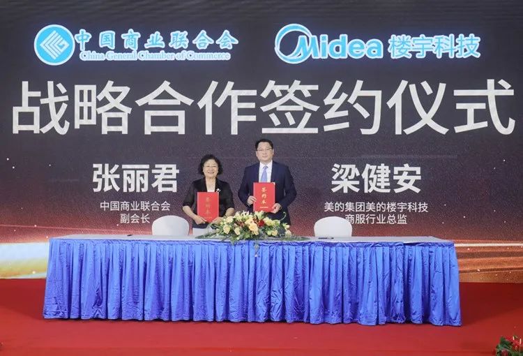 在本届大会上,中国商业联合会张丽君副会长和美的集团美的楼宇科技商服行业总监梁健安共同签署了战略合作协议,双方将共同在绿色商场建设,商业和服务业气体排放、节能、节水标准,开展行业专项调研等方面展开全面合作。