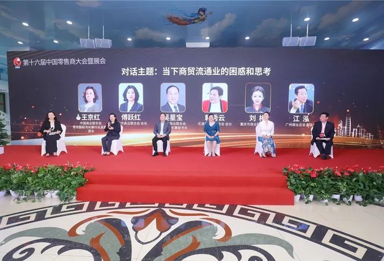 本届大会还特设了两场高端对话环节,中国商业联合会常务副秘书长兼行业发展部部长王京红作为主持人与北京市商业联合会会长傅跃红,上海市商业联合会常务副会长兼秘书长吴星宝,天津市商业联合会会长韩秀云,重庆市商业联合会会长刘梅,广州商业总会副会长江泓等五位嘉宾对话,嘉宾围绕“当下商贸流通业的困惑和思考”对话主题进行了对话分享。